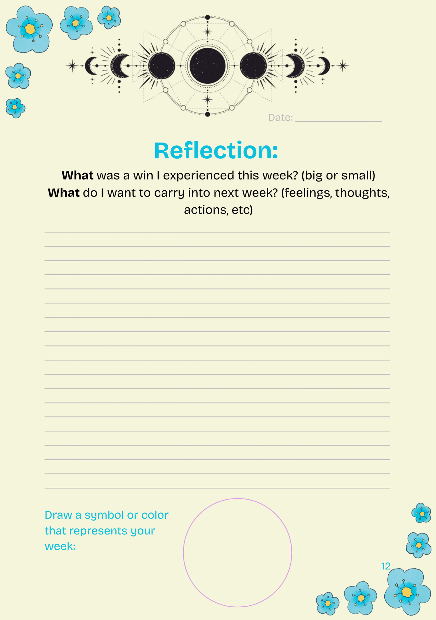 Cultivate mindfulness & aligned growth through simple reflections. Dump stressors, write about your day, goals, dreams etc. with free space. (Journaling about stressors has shown to decrease cortisol)