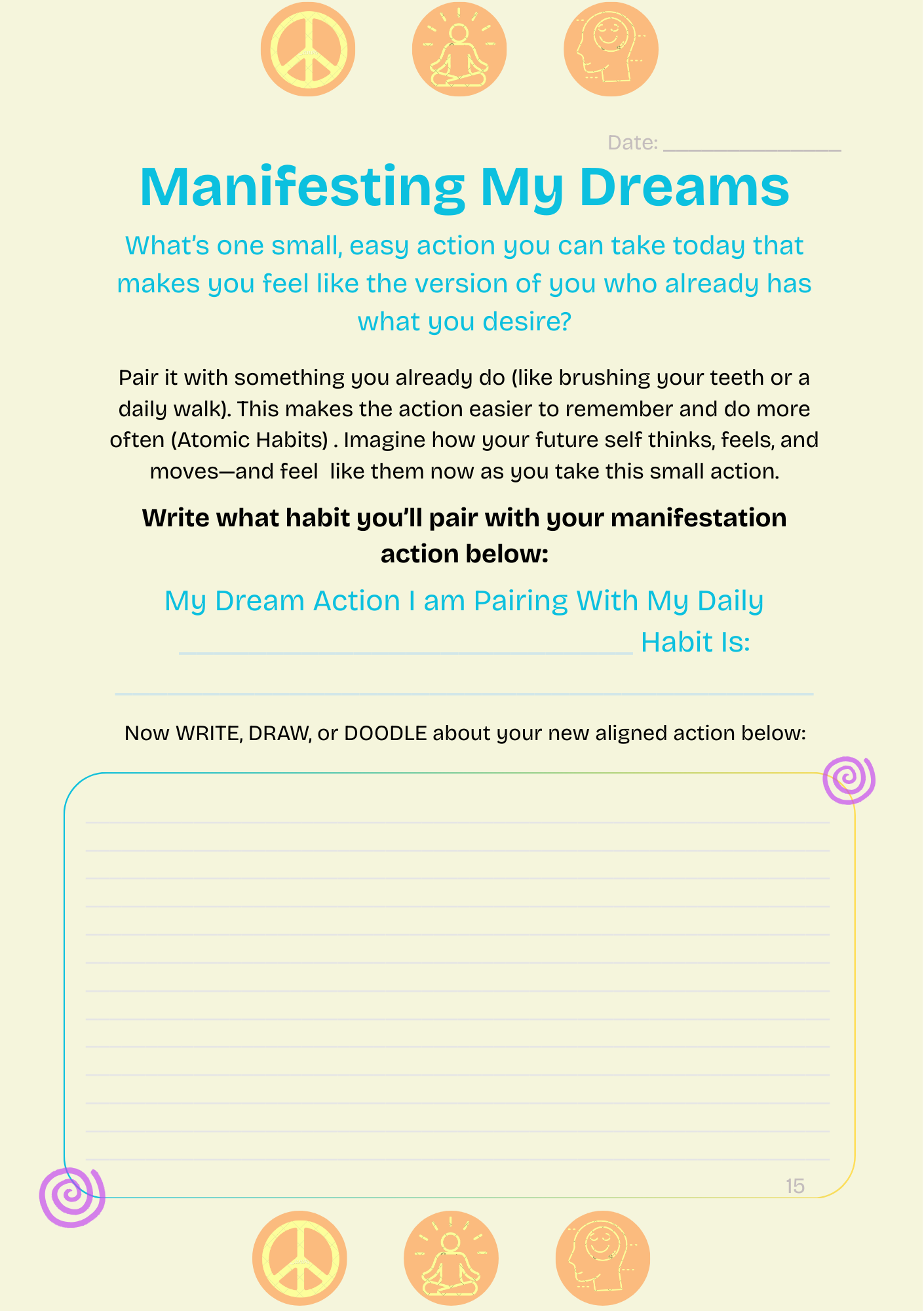 Mini-challenges and manifestation pages designed to build positive momentum and support alignment toward your dreams and goals.